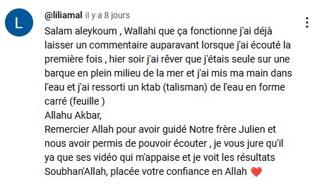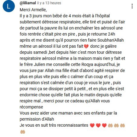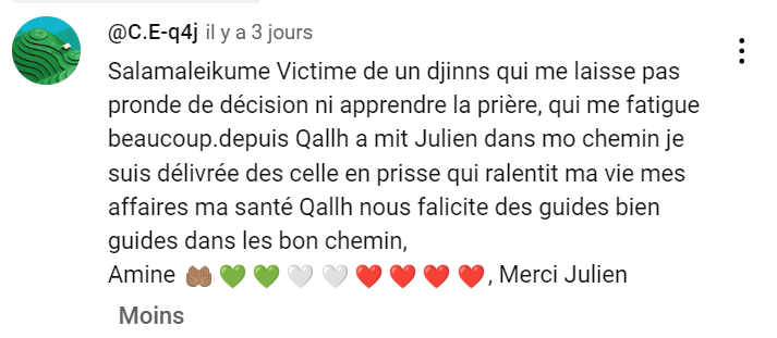 Votre épreuve, bien que douloureuse, n’aura pas été vaine. Elle devient une lumière pour ceux qui traversent encore les ténèbres de l’adversité. Grâce à votre sincérité et votre force, vous offrez un exemple précieux et un espoir réel à ceux qui se sentent prisonniers de leur souffrance.